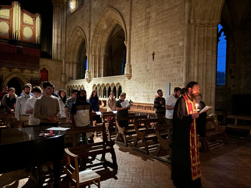 Around 16:30 we had some ice breaker activities, followed by vespers at 18:30. Vespers, just like most of the church services, was served in Milton Abbey Church (pictured to the right), which was founded in 935 by King Athelstan, before the Great Schism. As part of our worship, we brought two large icons (one Christ, the other of the Theothokos) which could be unpacked and serve as the iconostasis. Other attendees were also welcome to bring their own icons.
